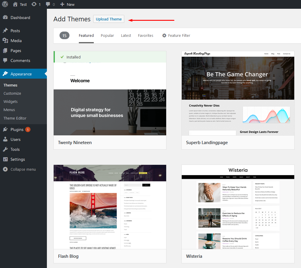 To manually upload your new WordPress theme, login with your credentials to your website and locate the wp-content folder in your WordPress install files. Upload the un-zipped 'sada' folder into the: wp-content/themes folder.