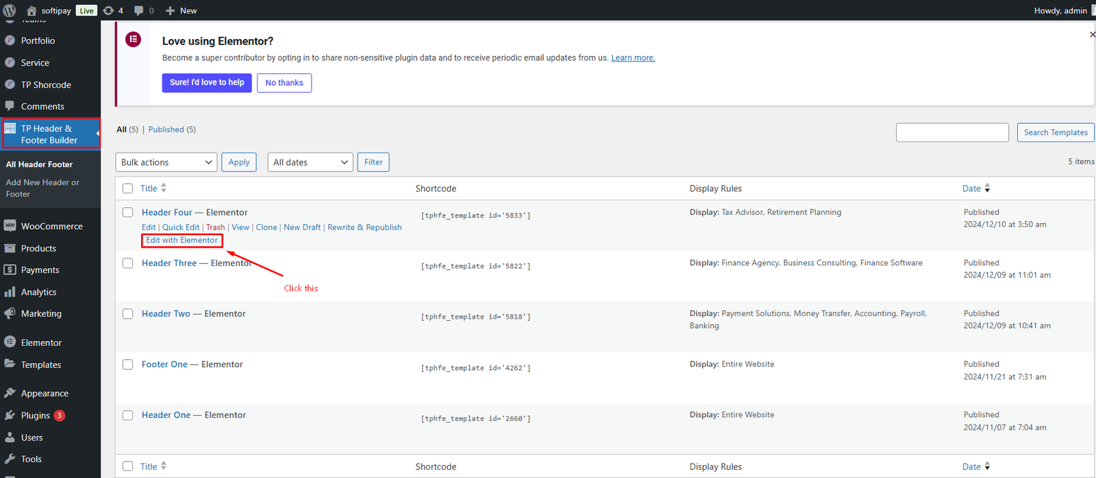 First go to Header form TP Header & Footer Builder. Then you can edit your header information easily