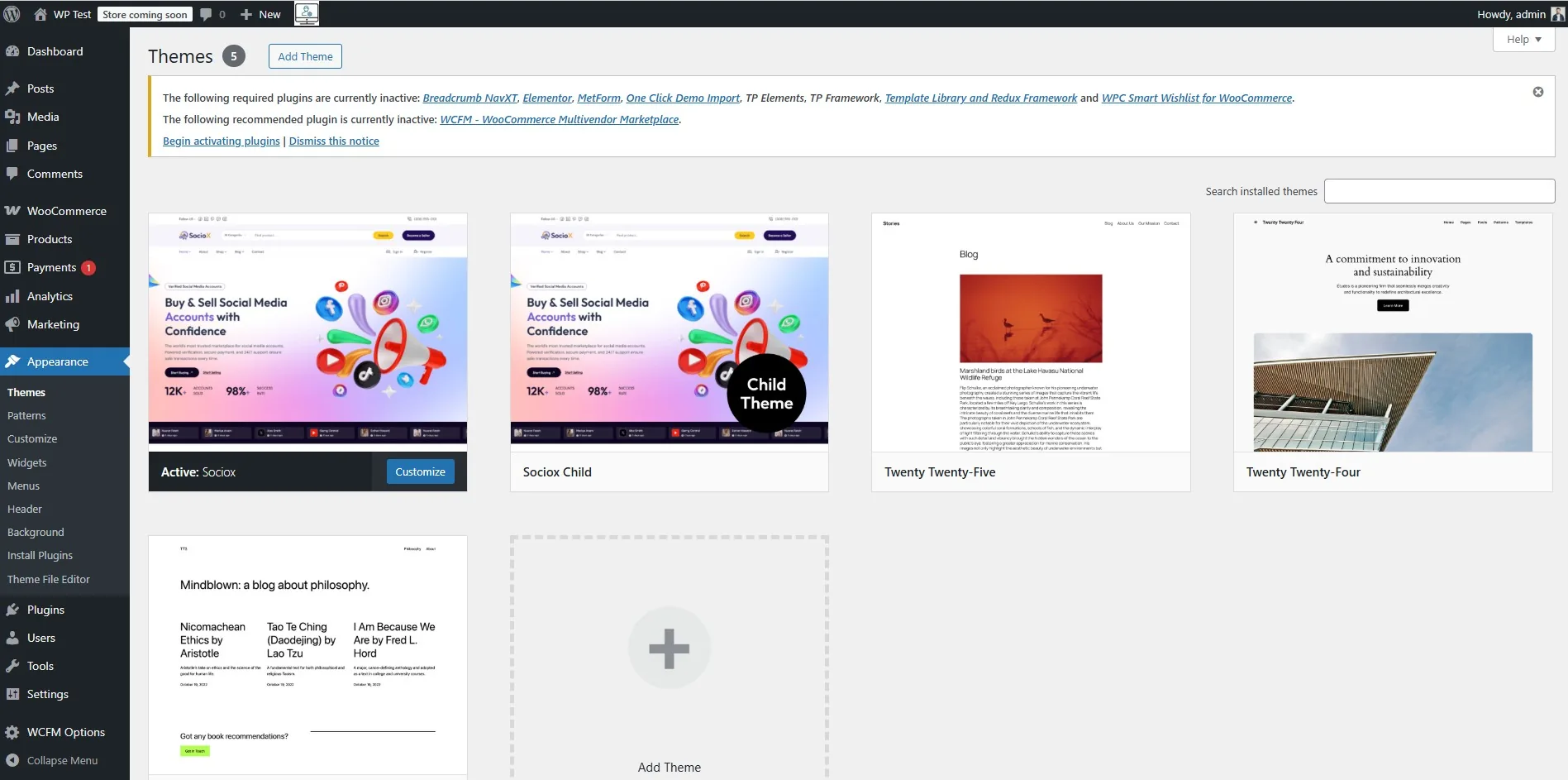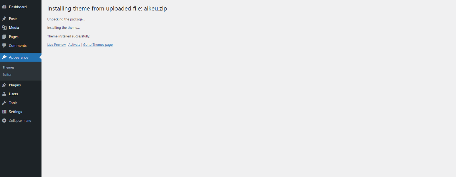 Once uploaded, activate the theme by heading to the “Themes” menu in the WordPress Dashboard. Locate the Sociox theme and hit “Activate”.