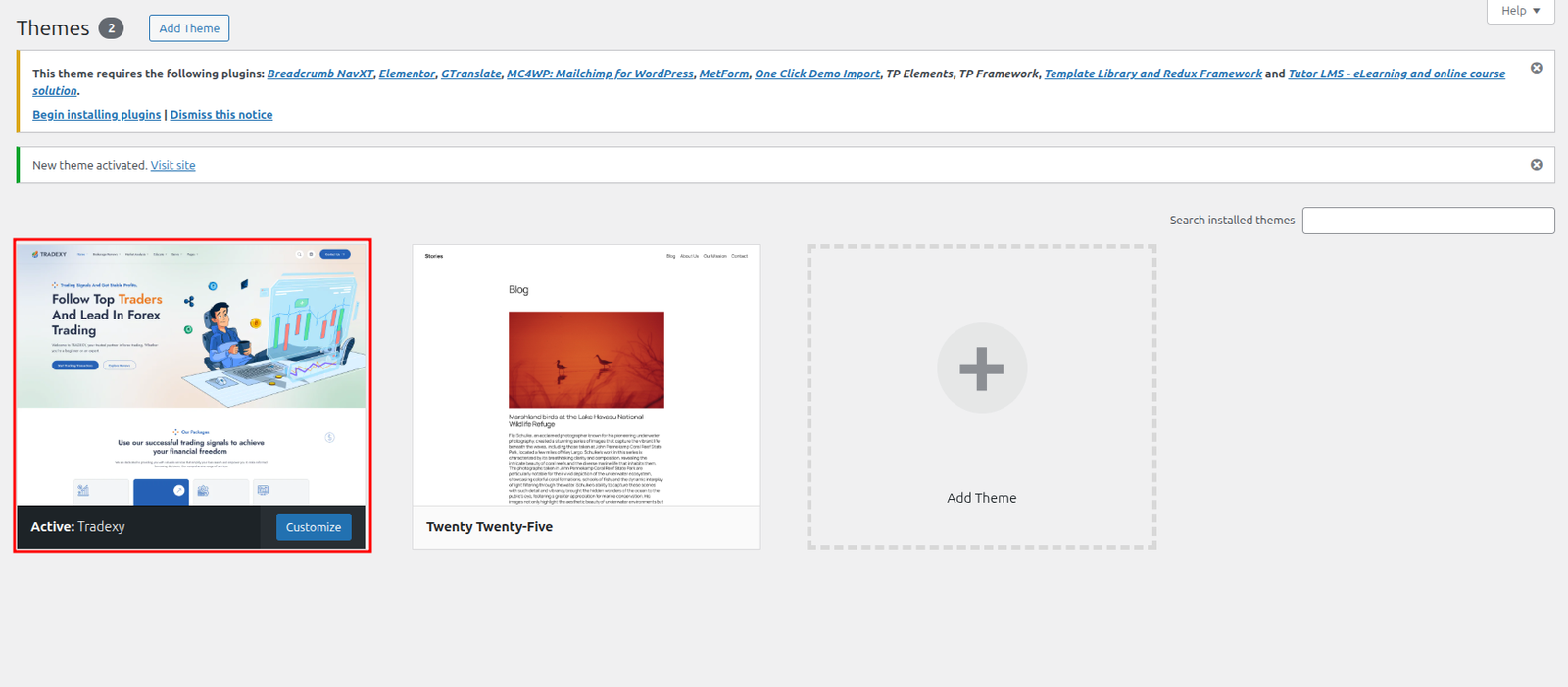 Once uploaded, activate the theme by heading to the “Themes” menu in the WordPress Dashboard. Locate the Villea theme and hit “Activate”.